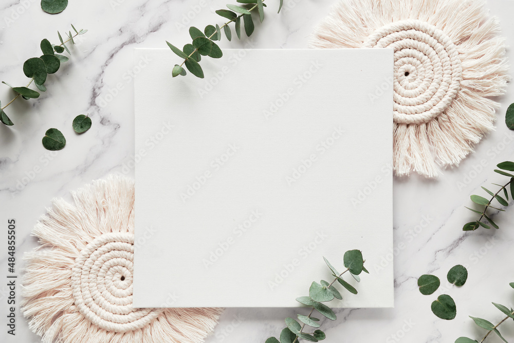 Obraz na plátně Mockup with blank square canvas, copy-space