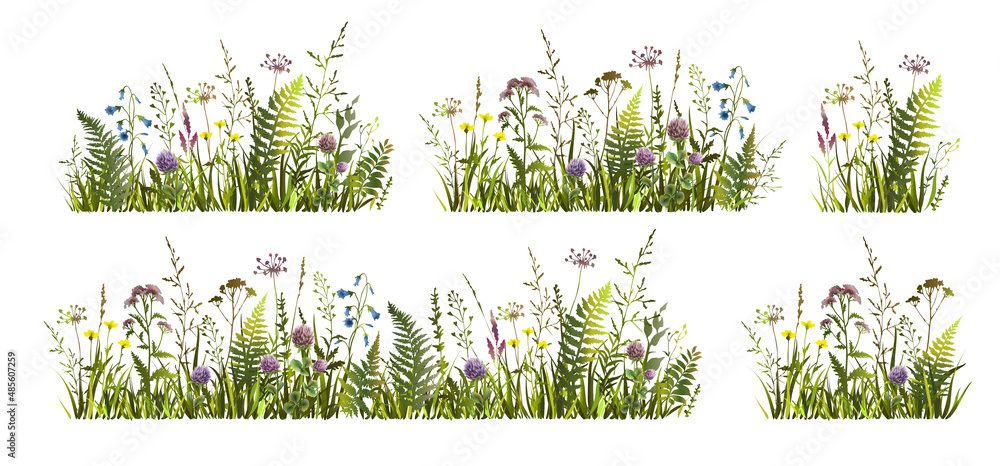 Obraz na plátně Spring or summer colorful floral set with meadow wild herbs and flowers