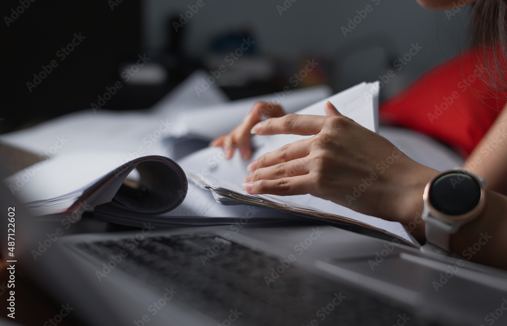 Obraz na plátně beautiful lady boss assistant hr worker talk telephone online describe vacancy