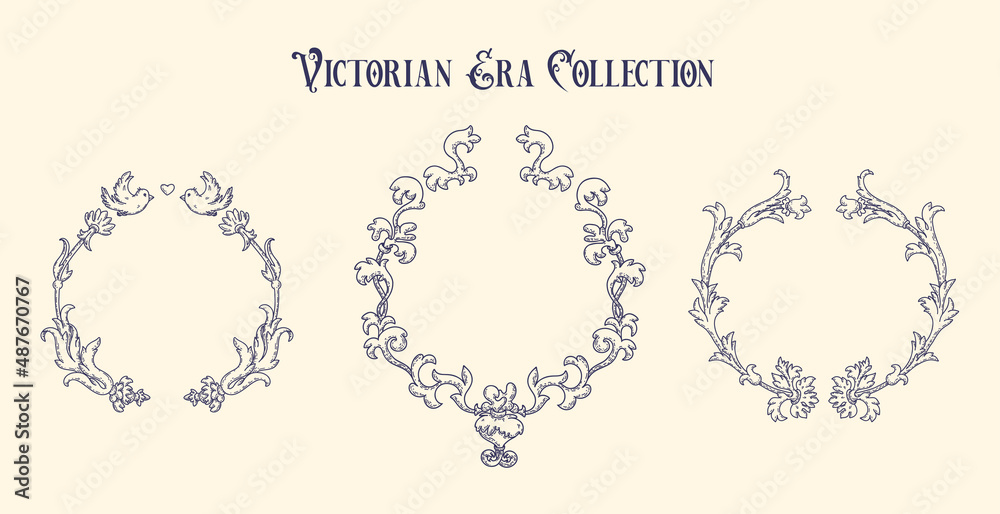 Obraz na plátně Vintage Victorian era stile wreaths inspired by Arts and Crafts movement
