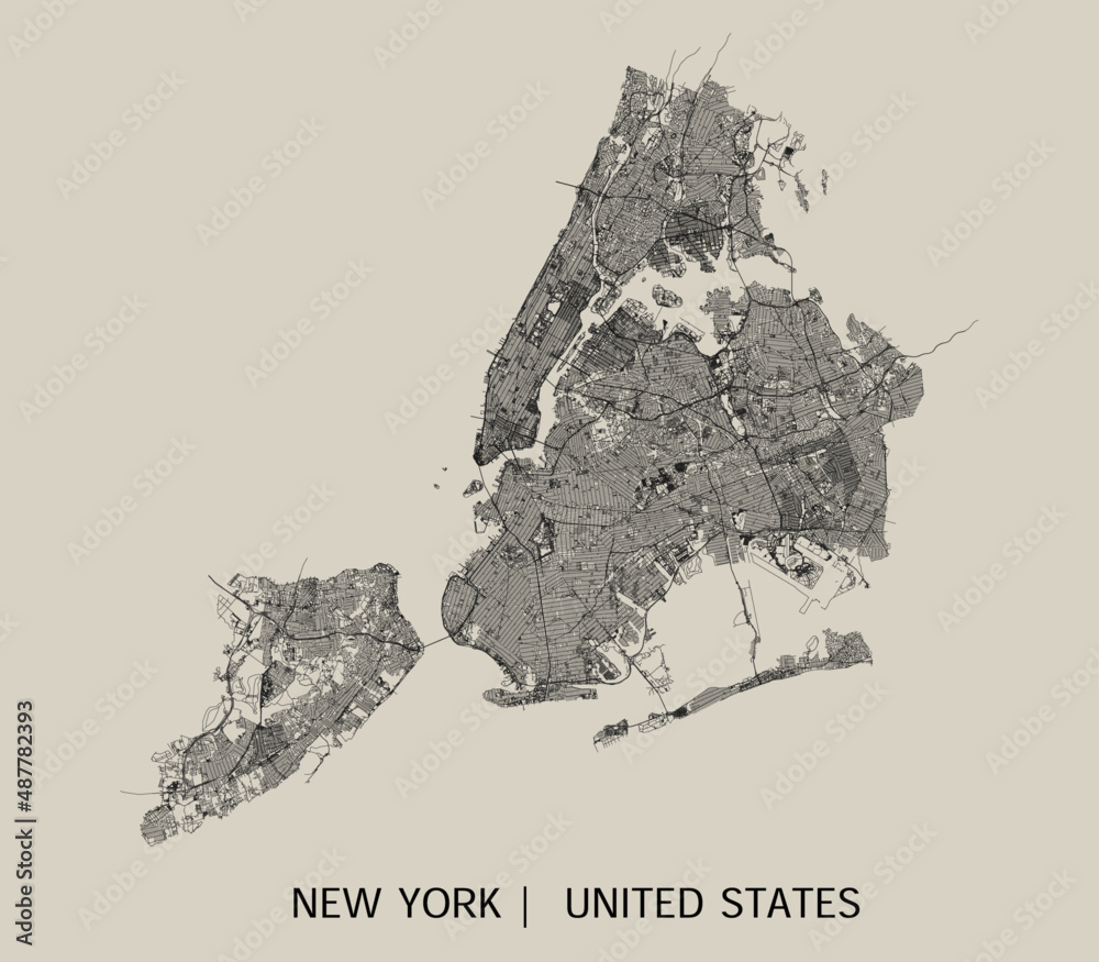 Obraz na plátně New York City (United States) street map outline for poster