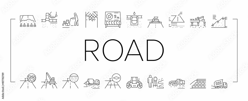Obraz na plátně Road Construction Collection Icons Set Vector .