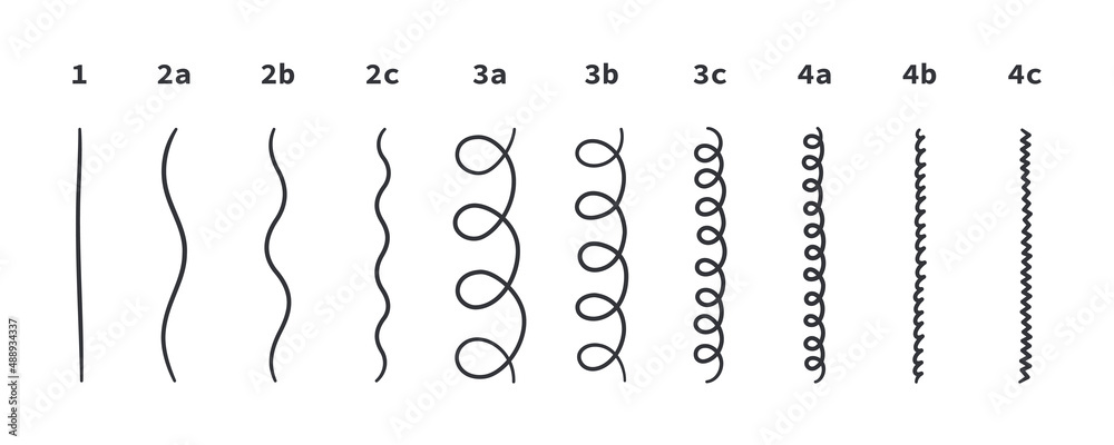 Obraz na plátně Classification of hair types - straight, wavy, curly, kinky