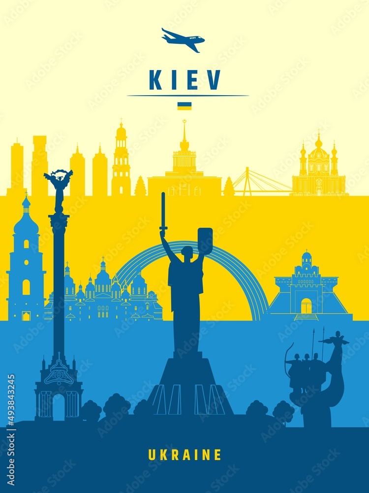 Obraz na plátně Ukraine metropolitan landmarks poster design vector illustration