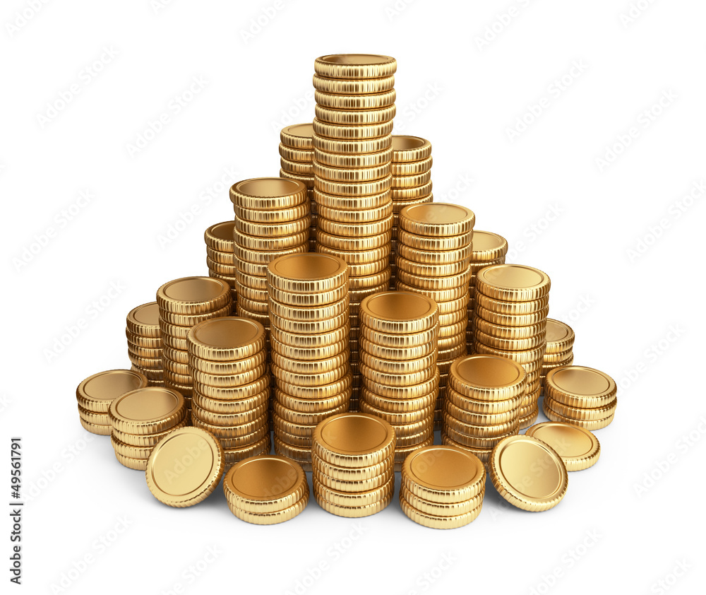 Obraz na plátně Big pile of coins. 3D Icon isolated on white background