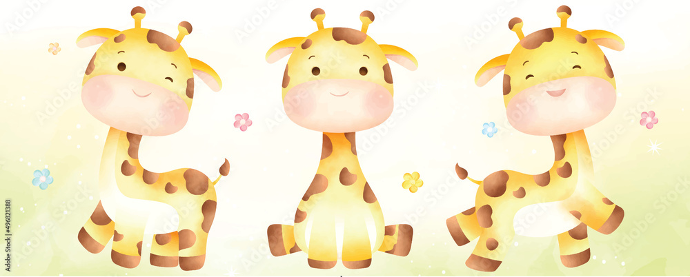 Obraz na plátně Cute Girrafe watercolor