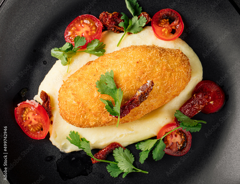 Obraz na plátně Gourmet chicken kiev cutlet with mashed potato