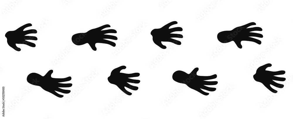 Obraz na plátně Gorilla foot print in black color. Monkey front and back paw