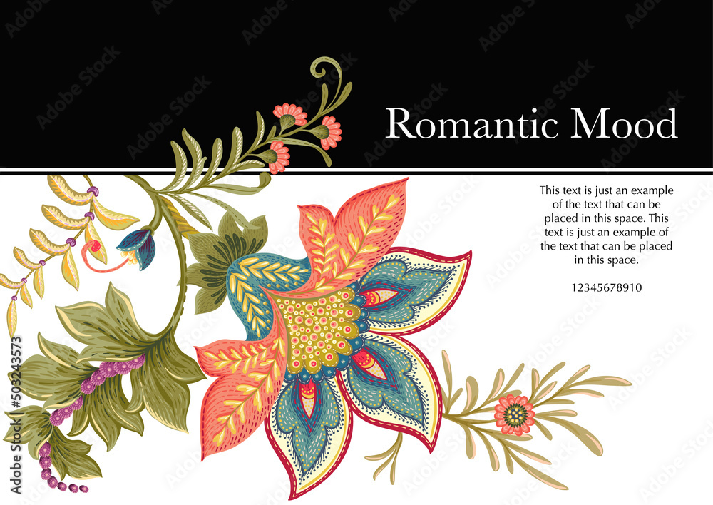 Obraz na plátně Fantasy flowers in retro, vintage, jacobean embroidery style