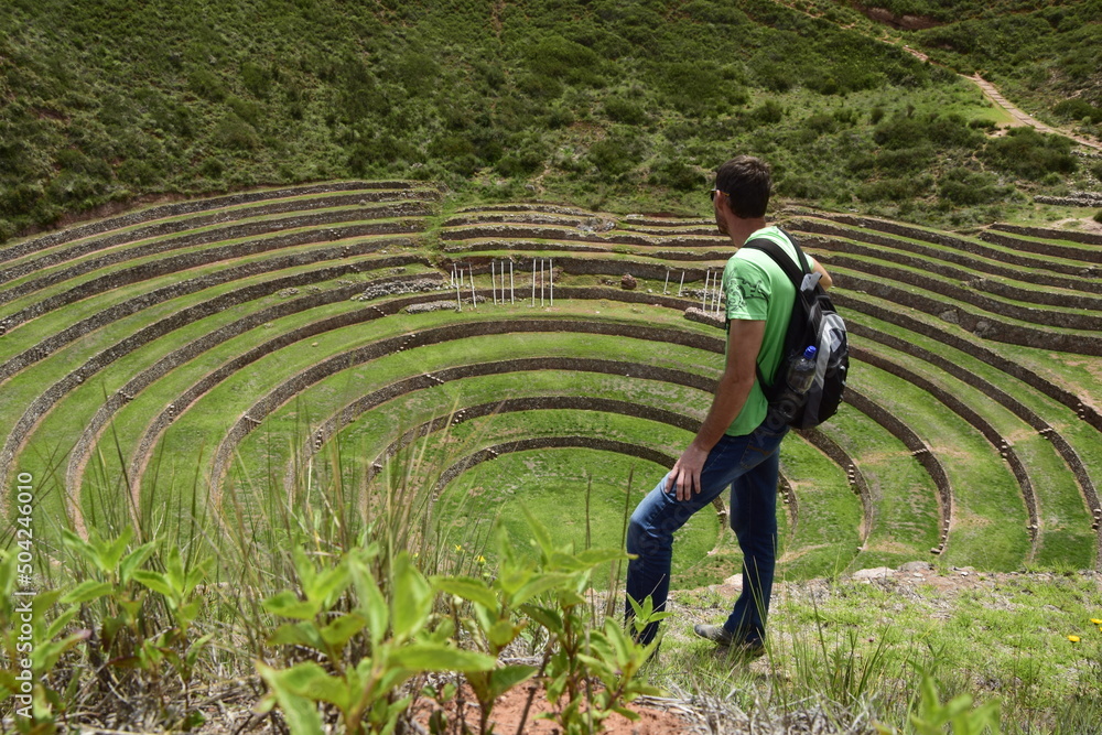 Obraz na plátně A person on the territory Inca terraces of Moray