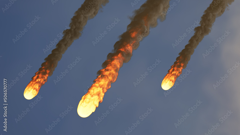 Obraz na plátně 3d Rendering of a meteor shower burning up in the earth's atmosphere