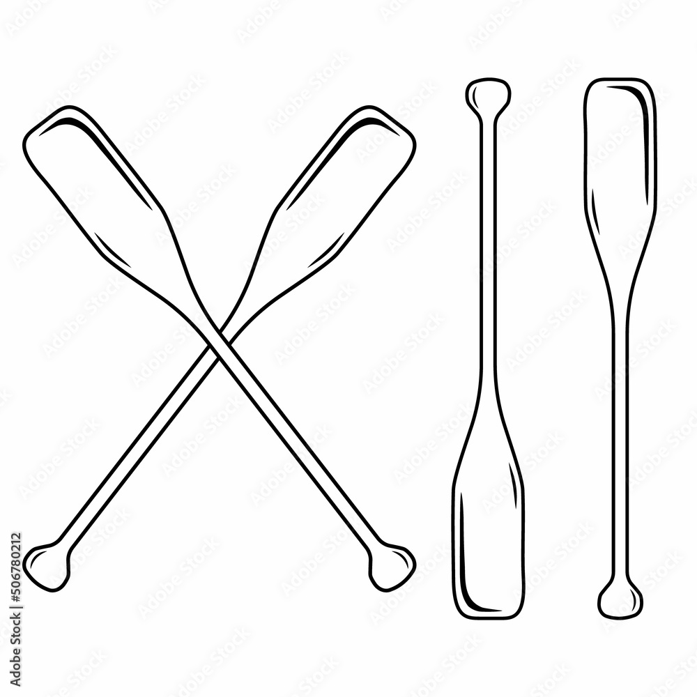 Obraz na plátně Wooden boat oars, black outline, vector illustration on white background