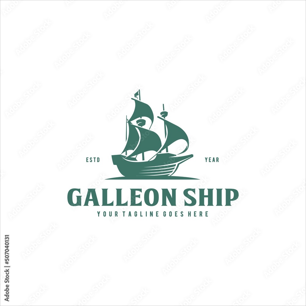 Obraz na plátně Ship Sail Wooden Galleon Logo Design Vector Image