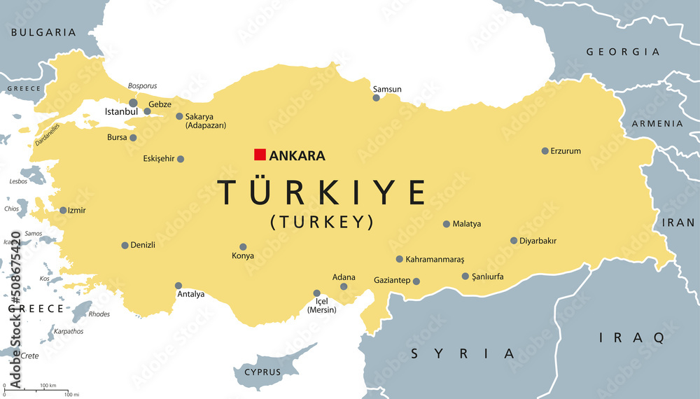 Obraz na plátně Türkiye, Turkey political map with capital Ankara