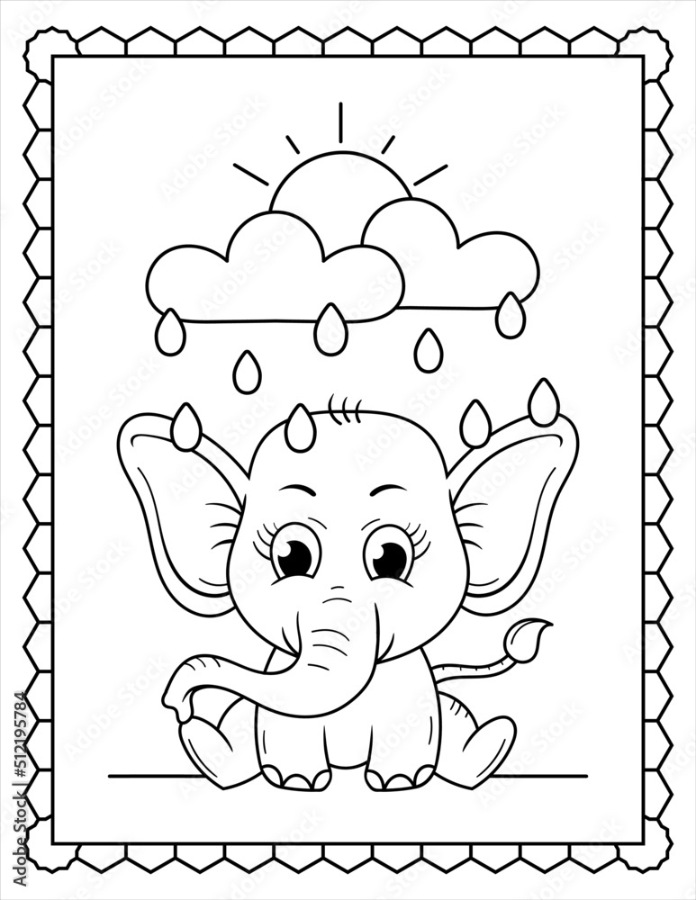 Obraz na plátně Baby Elephant cartoon funny coloring page for kids