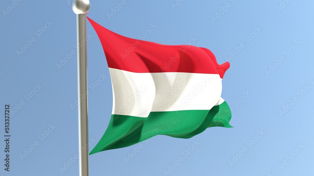 Obraz na plátně Hungarian flag on flagpole. Hungary flag fluttering in the wind.