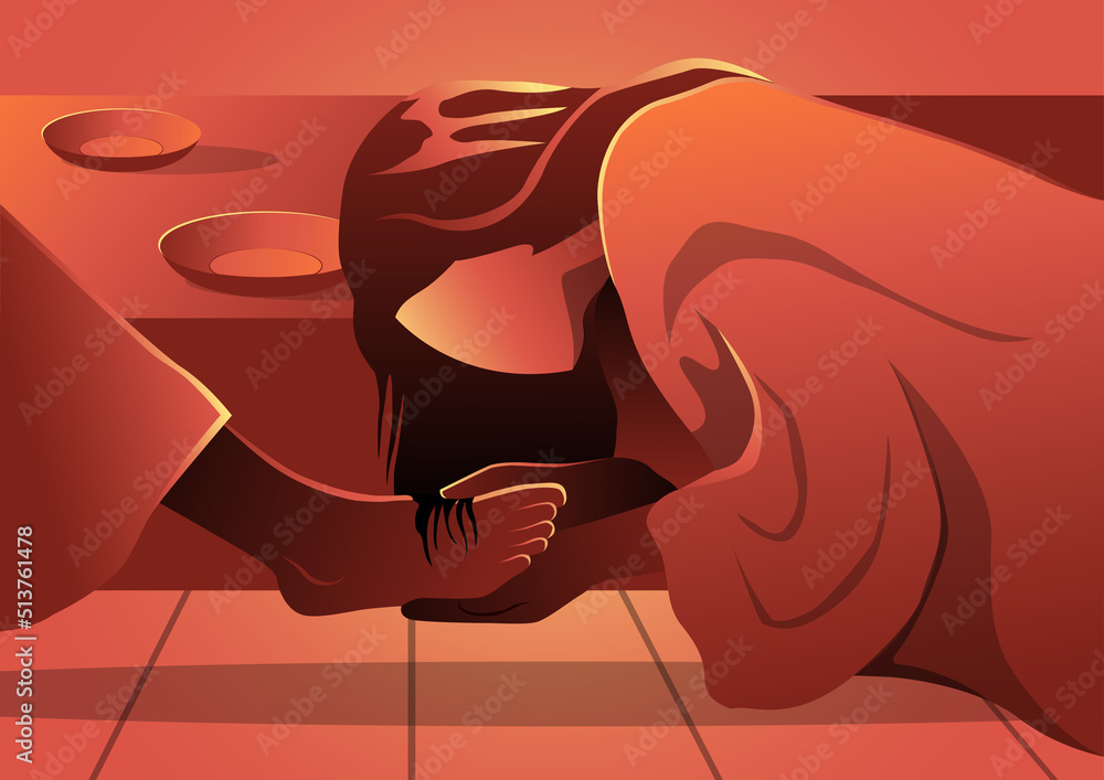 Obraz na plátně Sinful woman washed the Jesus' feet