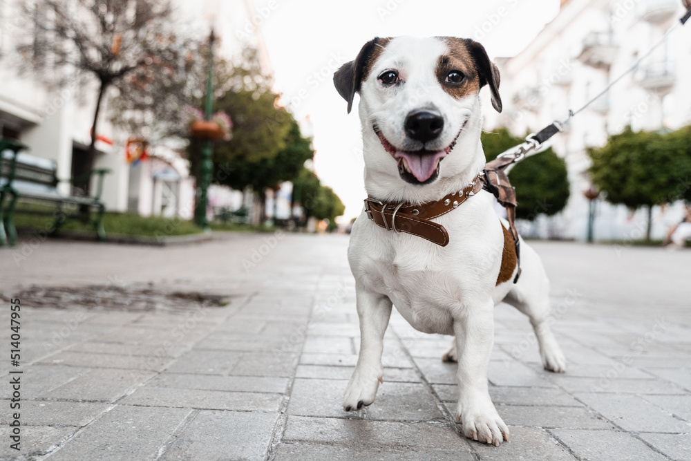 Obraz na plátně Jack Russell Terrier puppy on the street close-up photo