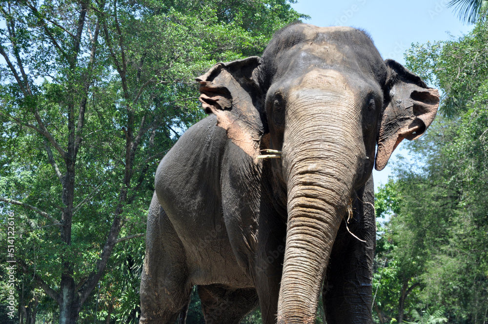 Obraz na plátně Sumatra elephant in wildlife green background outdoor