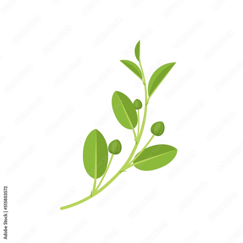 Obraz na plátně Vector illustration, fresh caper bud with leaves, scientific name Capparis spinosa, flat design, isolated on white background