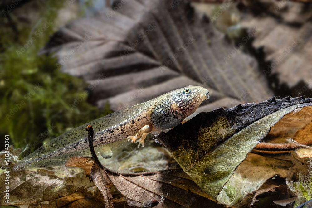 Obraz na plátně A tadpole of the grass frog with strong little legs, Rana temporaria