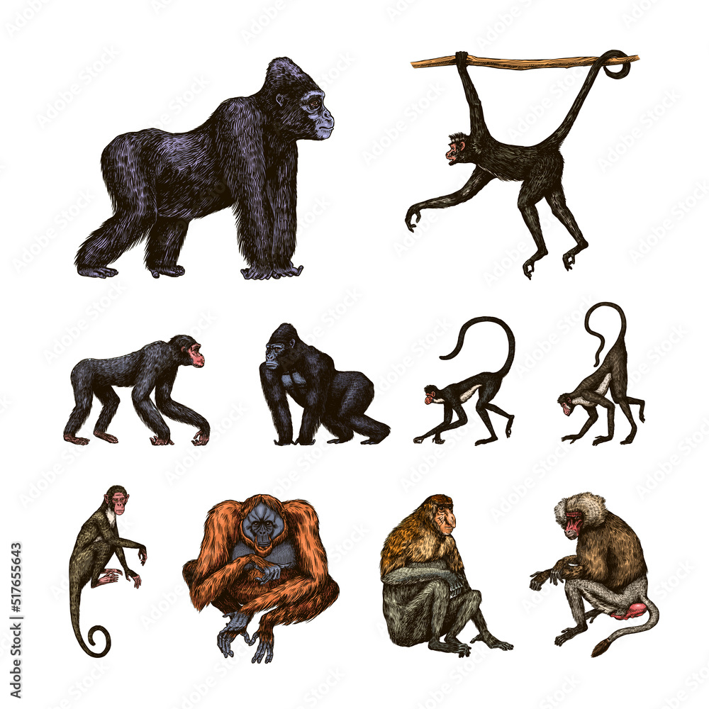 Obraz na plátně Bonobo or chimpanzee, Western gorilla , Orangutan in vintage style