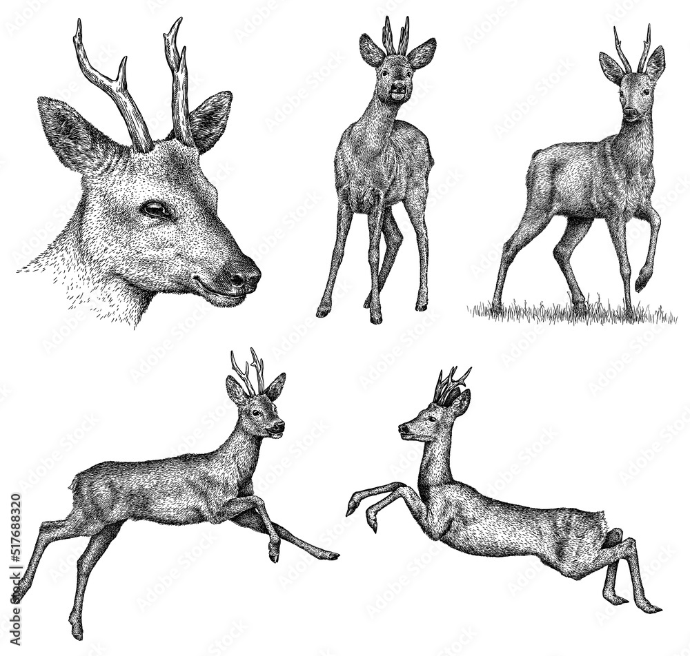 Obraz na plátně Vintage engrave isolated deer set illustration ink sketch