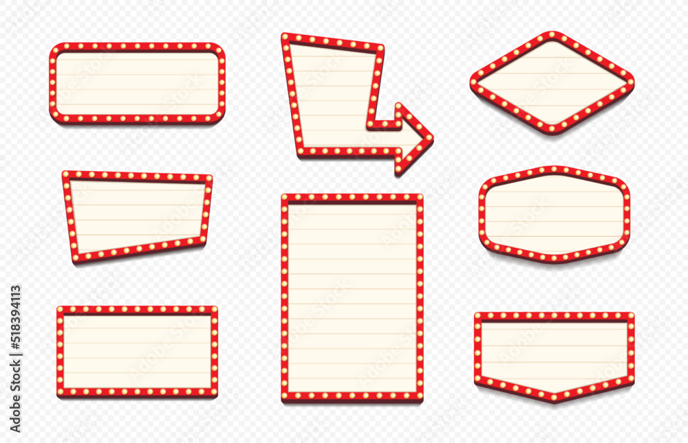 Obraz na plátně Retro lightbox vector template different shape with lightbulb isolated on transparent background for party poster, banner advertising, promotion and sale billboard, cinema, bar show or restaurant