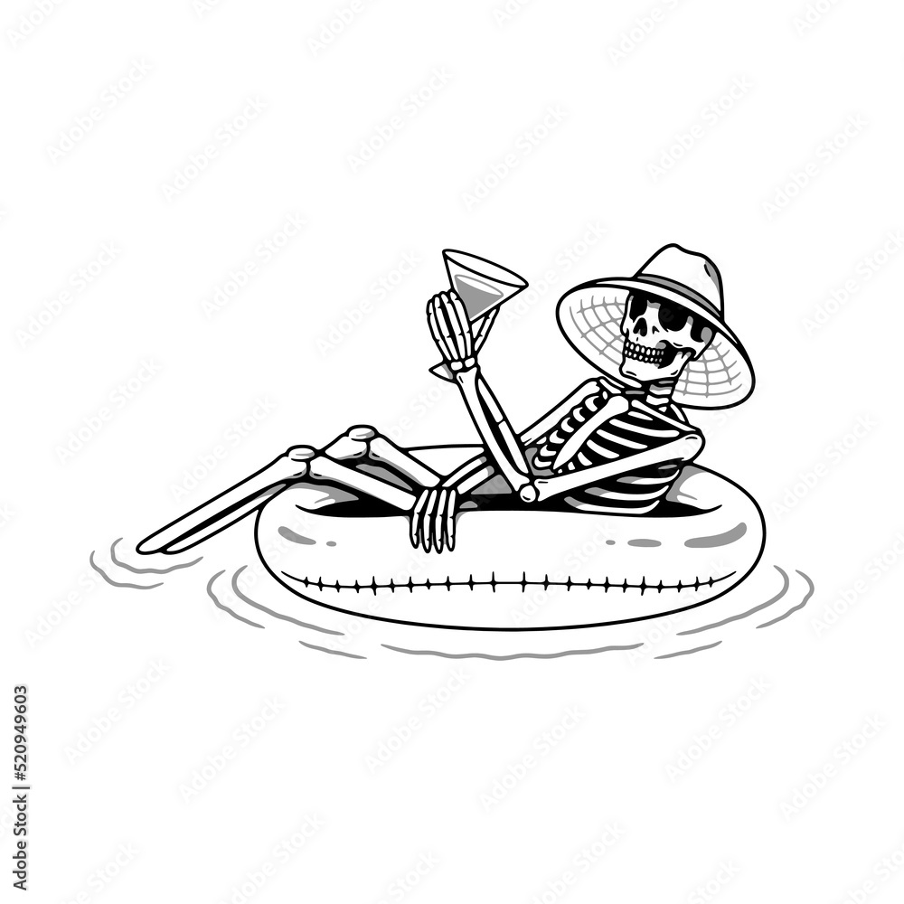 Obraz na plátně SIPPING ON BOOZE SKELETON FLOATS ON AN INFLATABLE RING BLACK WHITE BACKGROUND