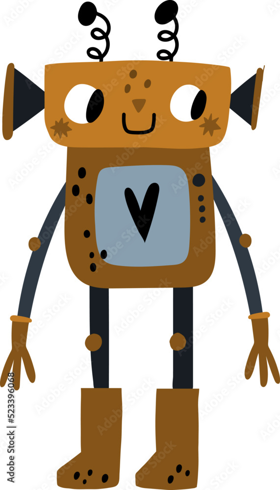 Obraz na plátně Funny robot. Retro rusty droid in childish hand drawn style