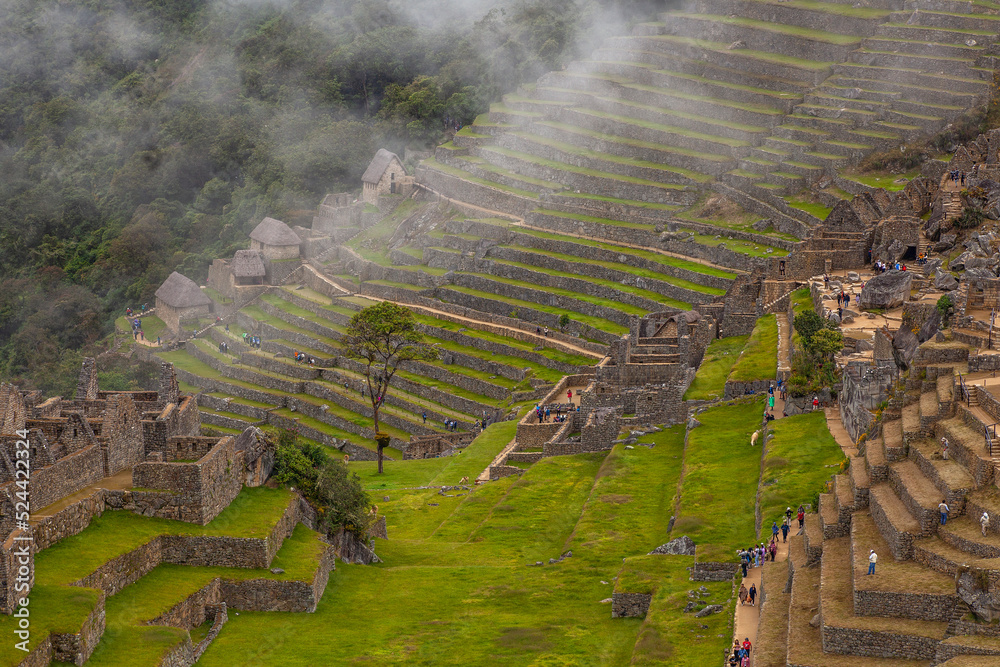 Obraz na plátně Machu Picchu ancient city view from Huchu'y Picchu in cloudy weather