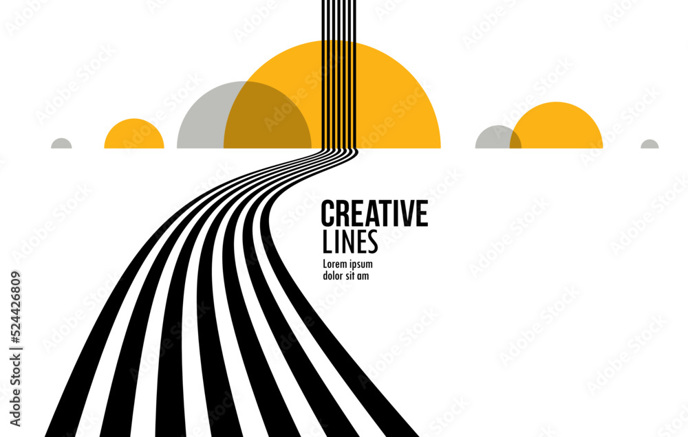 Obraz na plátně 3D black and white lines in perspective with yellow elements abstract vector background, linear perspective illustration op art, road to horizon