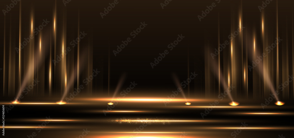 Obraz na plátně Elegant golden stage vertical glowing with lighting effect sparkle on black background