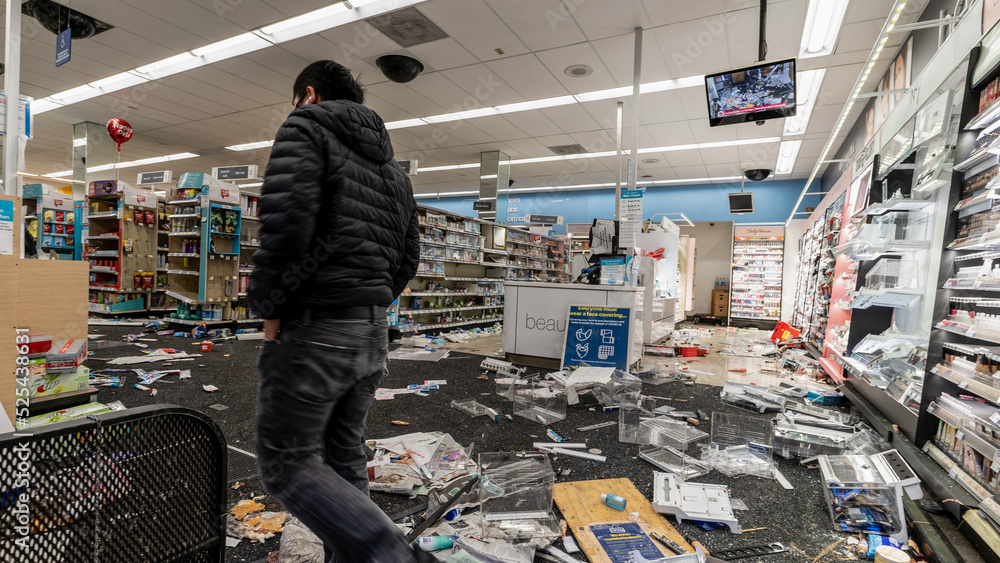 Obraz na plátně man inspecting store after been looter
