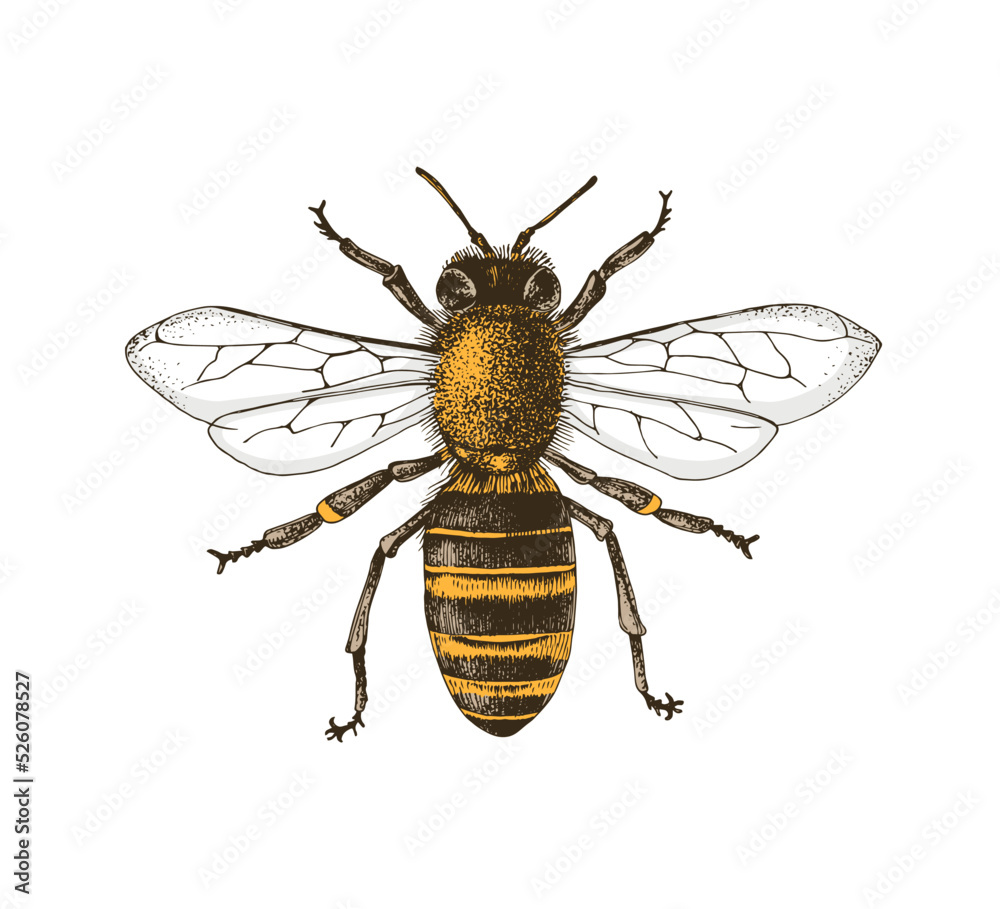Obraz na plátně Sketch honey bee top view vector drawing.