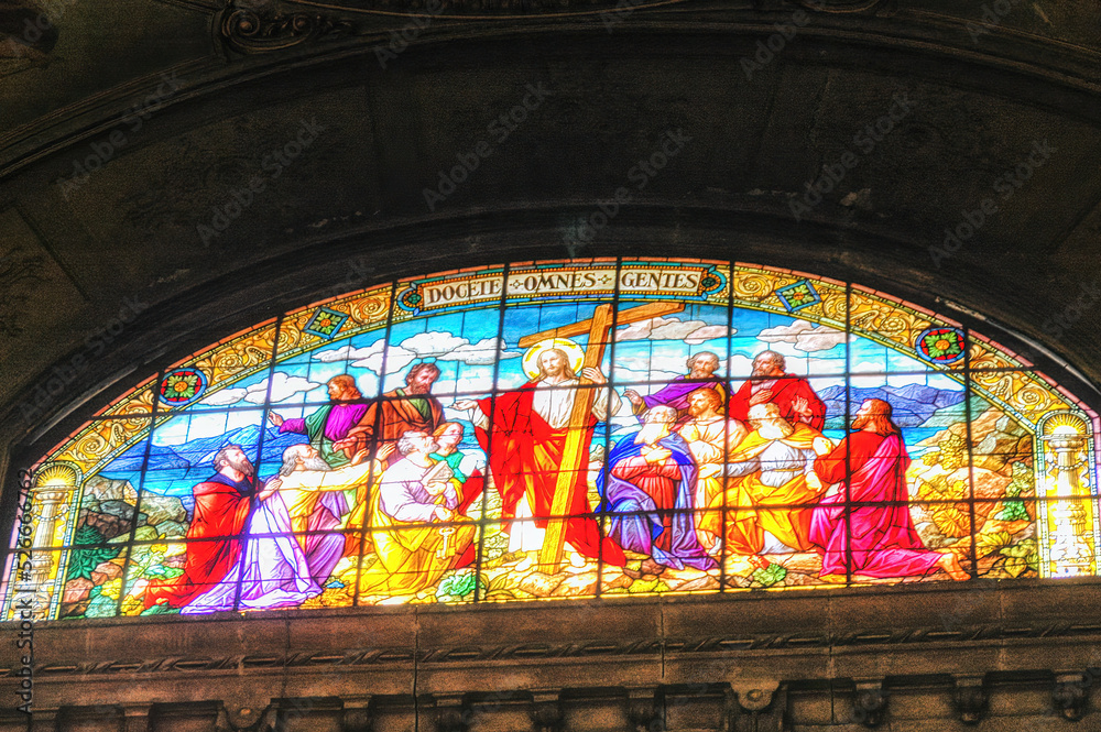Obraz na plátně Santiago, Cathedral, interior, stained glass window,