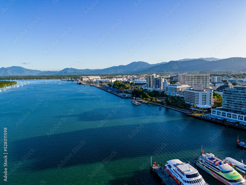Obraz na plátně Aerial photo of Cairns biat harbour and cityscape with perfect blue water and sk
