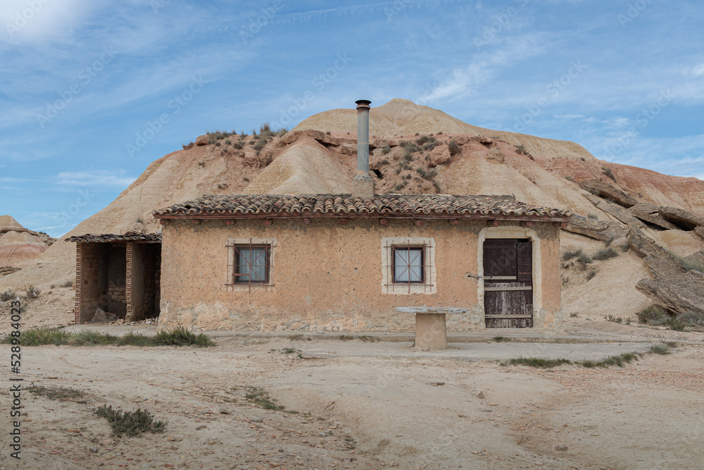 Obraz na plátně Cabin (lodge, small house) in Badlans of Navarre (Bardenas Reales de Navarra) dessert in the middle of Spain