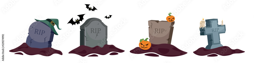 Obraz na plátně Set of old graves in cartoon style