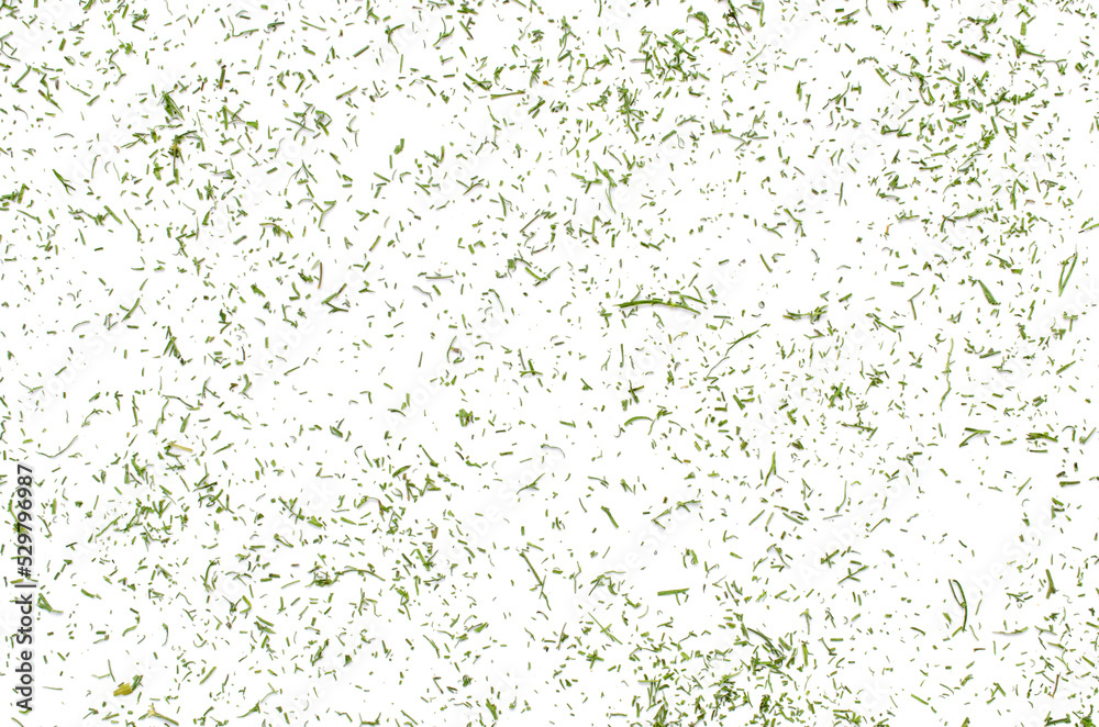 Obraz na plátně Background of dry, chopped dill isolated on a white background, top view