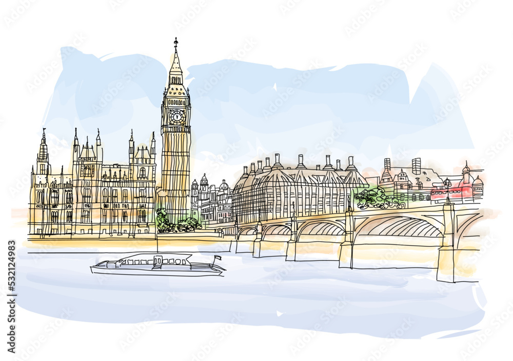 Obraz na plátně The Big Ben, the Houses of Parliament and Westminster bridge in London in a beau
