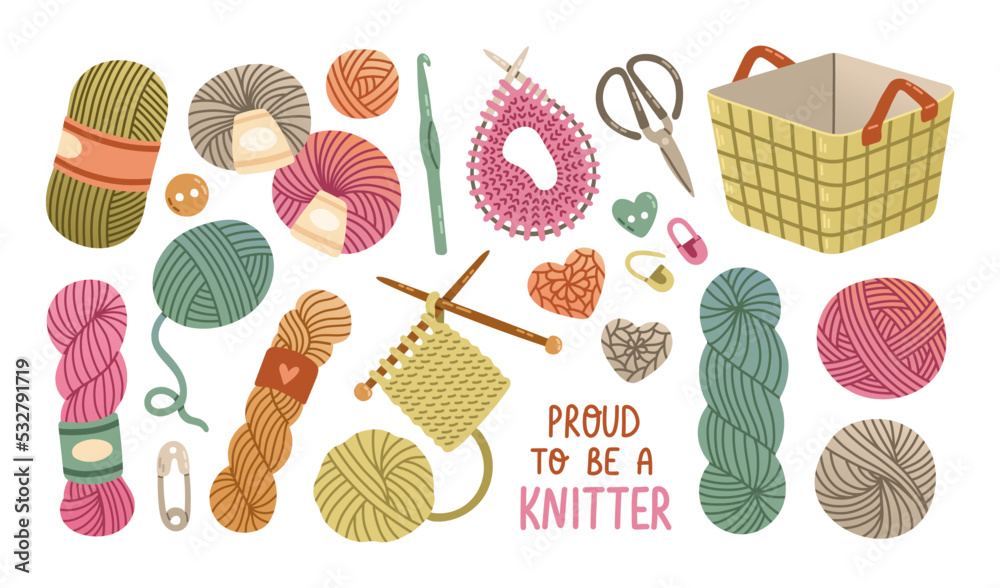 Obraz na plátně Set of wool yarn balls knitting flat design vector