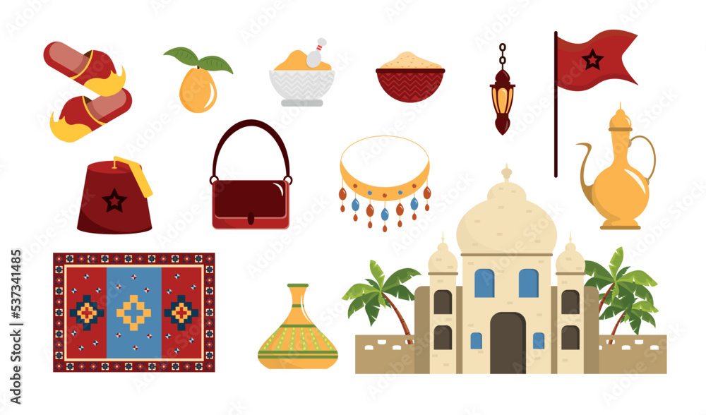 Obraz na plátně Set of equipment in Arab countries in cartoon style