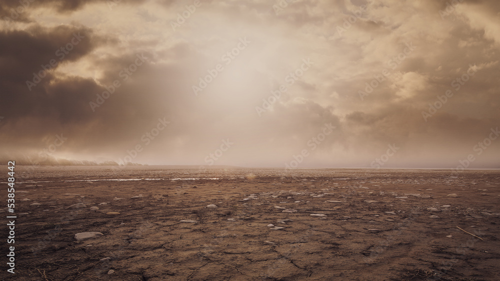 Obraz na plátně Dry barren land with cloudy sky