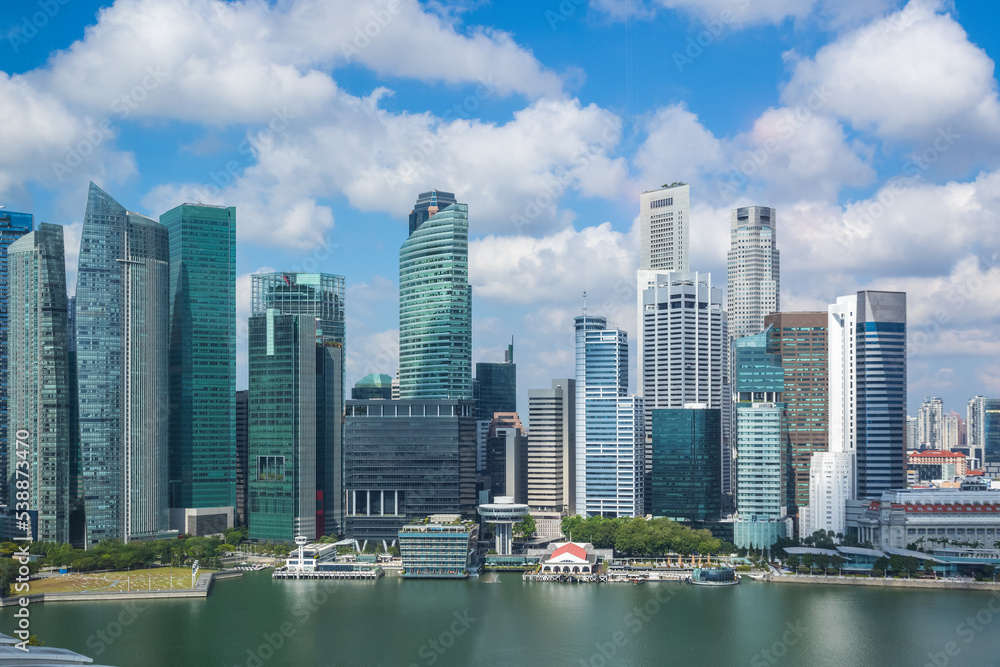 Obraz na plátně Singapore cityscape, financial centre district by Marina Bay