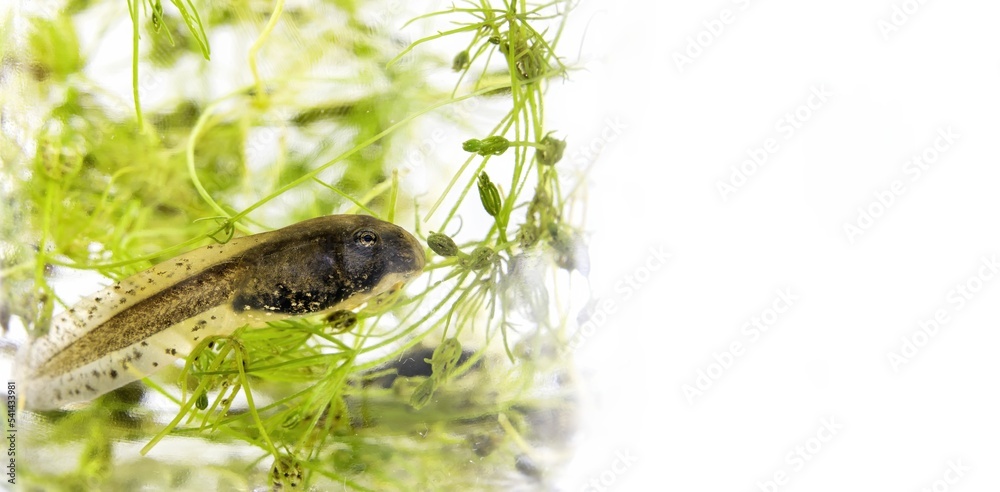 Obraz na plátně A tadpole in the water surrounded by aquatic flora in its process of transformat