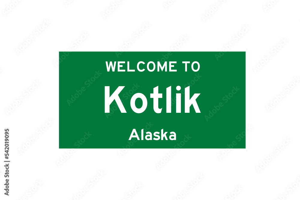 Obraz na plátně Kotlik, Alaska, USA. City limit sign on transparent background.