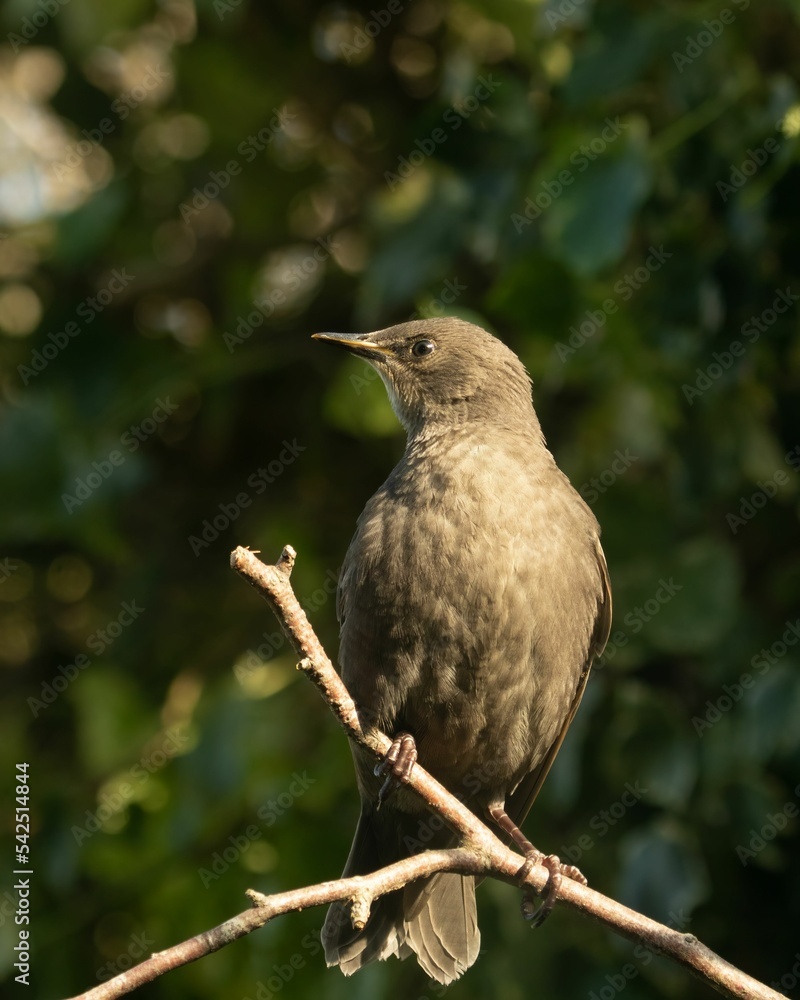 Obraz na plátně Closeup vertical shot of Juvenile Starling fledgling perched on branch