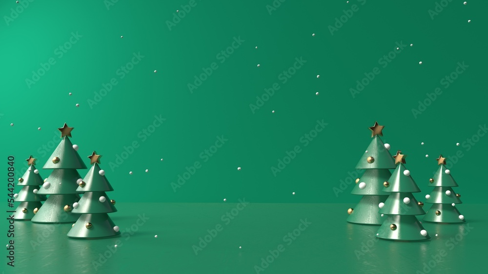 Obraz na plátně Christmas trees with snowing - 3D render illustration