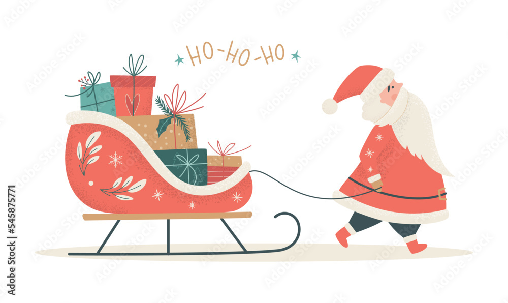 Obraz na plátně Santa Claus carrying sleigh with present boxes